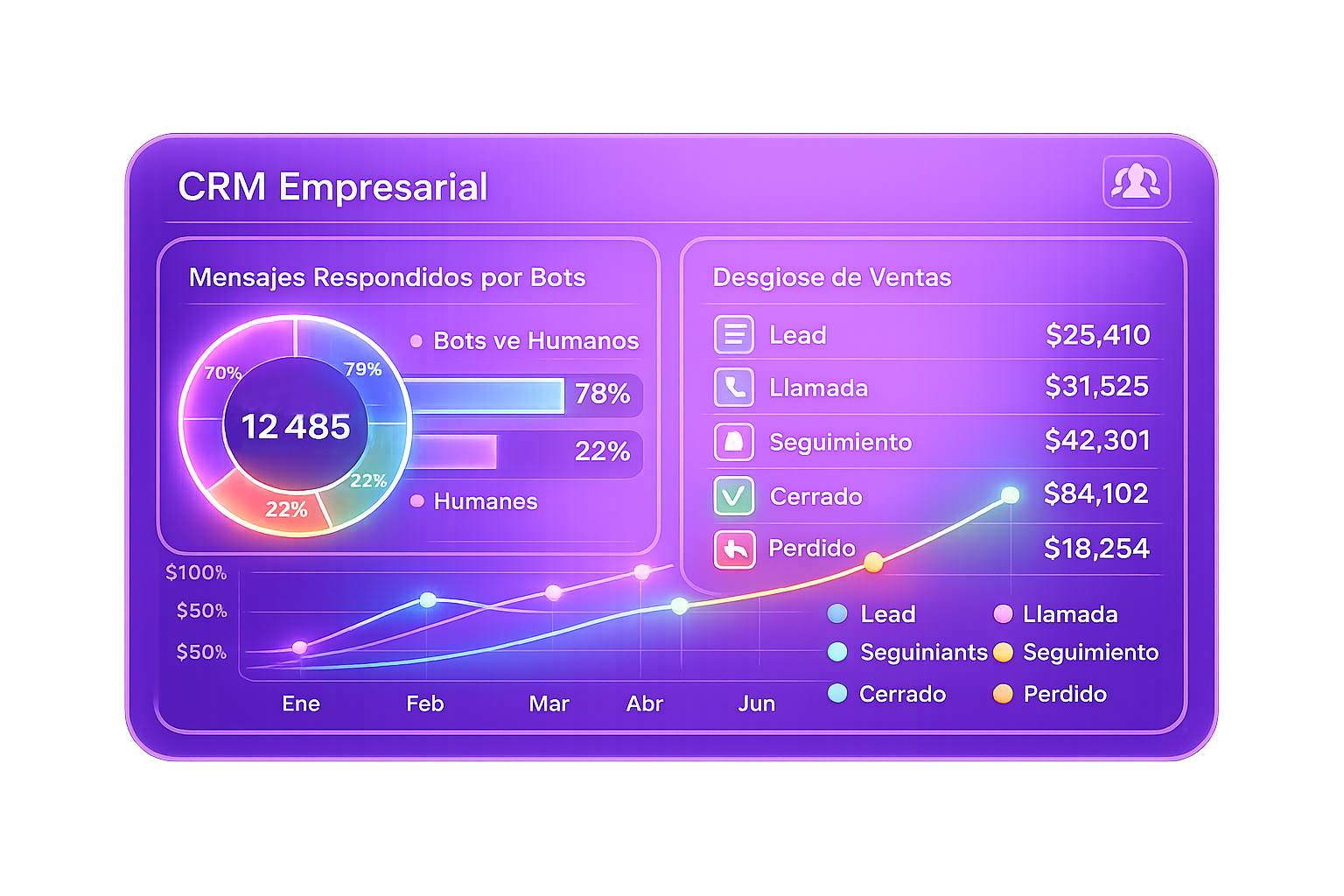 - CRM inteligente: organiza leads, historial y reportes.