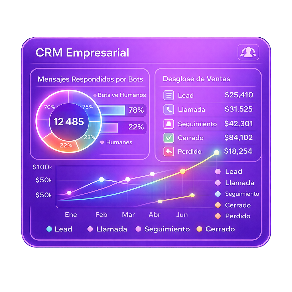 - CRM inteligente: organiza leads, historial y reportes.